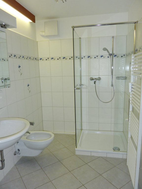 2. OG mit Aufzug, neue Kunststoff-Fenster 2016, neuwertiges Bad mit Dusche und Bidet, separates WC, größtenteils Parkett, Kabelanschluss für TV/Radio, großer, überdachter Balkon mit elektrisch betriebener Markise, komfortable Extras wie z.B. „Müllschlucker“, komplette Hausmeisterbetreuung